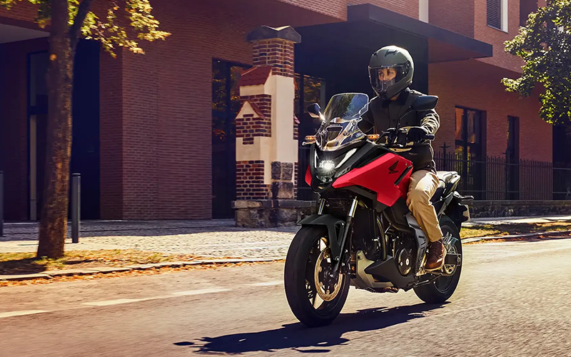 A NC 750X estreia rodas de alumínio com novo design 3x3, que alterna três raios em cada direção. Essa estrutura reforça a rigidez e reduz o peso, melhorando a estabilidade e a resposta da suspensão. O resultado é uma pilotagem mais precisa e confortável, tanto na cidade quanto na estrada.
