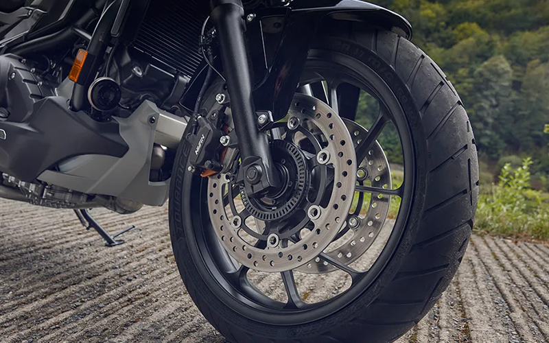 A nova NC 750X conta com um sistema de freios composto por discos duplos de 296mm na dianteira. Essa atualização proporciona maior eficiência na frenagem, melhor distribuição de força nas paradas e respostas mais precisas.
