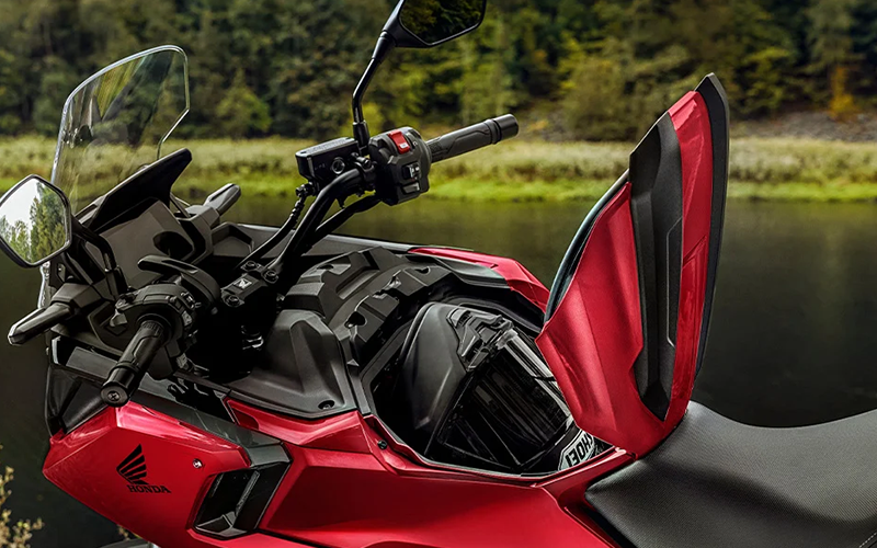 Com 23 litros de capacidade, o porta-objetos da NC 750X acomoda itens essenciais como mochilas e capacetes, suportando até 5kg. Essa solução garante mais funcionalidade e segurança para seus deslocamentos, ideal para os seus trajetos do dia a dia e para as viagens.